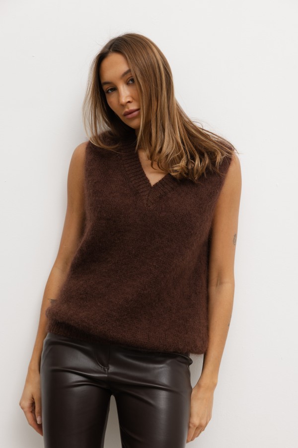 W obecnym sezonie szczególnie modne są swetry z grubymi, dekoracyjnymi splotami – warkoczami, rombami i prążkami, które dodają tekstury i charakteru. Oversize pozostaje silnym trendem, podobnie jak bufiaste rękawy i asymetryczne kroje. Często pojawiają się ażurowe wstawki oraz subtelne błyszczące akcenty. Kolory skupiają się na ciepłych odcieniach ziemi – beżach, karmelach, brązach i zieleniach – uzupełnionych klasyczną czernią i szarością.