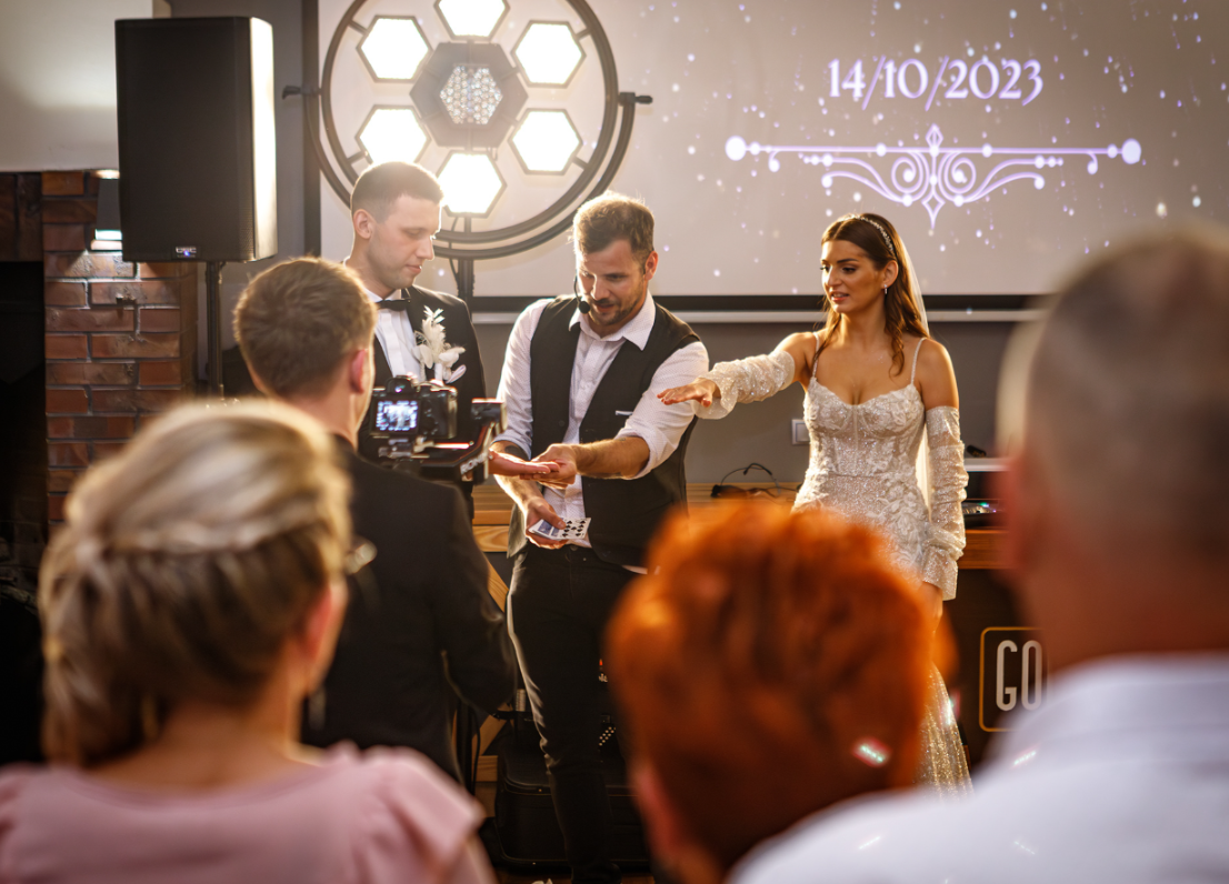 Iluzjonista na weselu może być także prezentem dla pary młodej. Coraz częściej przygotowuje się spersonalizowany numer, który nawiązuje do historii zakochanych, ich pasji lub ważnych detali z życia. Taki element dodaje uroczystości osobistego tonu i sprawia, że magia staje się częścią opowieści o nich. To również piękny moment do uchwycenia na zdjęciach i filmach: zaskoczenie, wzruszenie i autentyczny śmiech tworzą pamiątkę, której nie da się zaplanować w standardowy sposób.